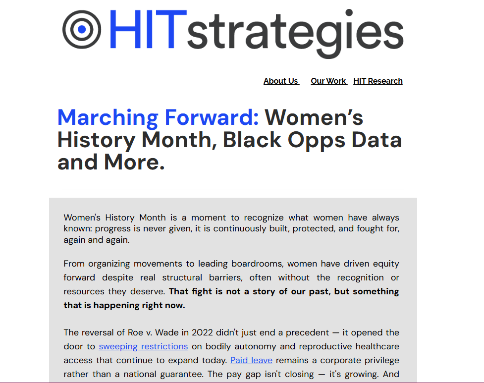 About Us Our Work HIT Research Marching Forward: Women’s History Month, Black Opps Data and